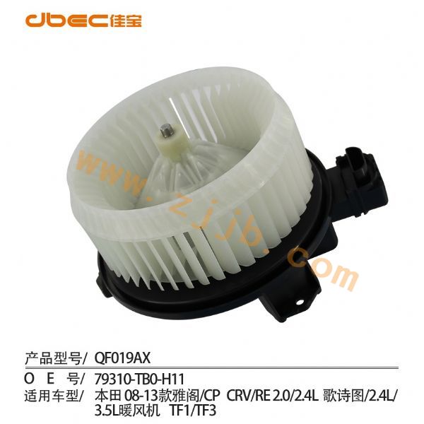 QF019AX | 暖風電機總成 | 本田 | 79310TB0H11 | 本田 雅閣/03-13年/CP 本田 CRV/2.0/2.4/RE 本田 歌詩圖/2.4/TF1 本田 歌詩圖/3.5/TF3 HONDA CRV,ACCORD, CROSSTOUR | 電話/TEL: 0577-65356116,0577-58905588 |